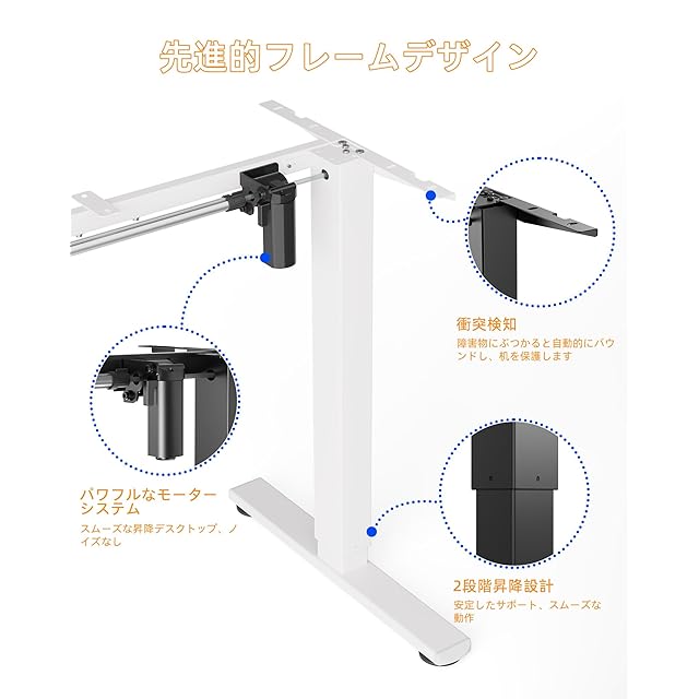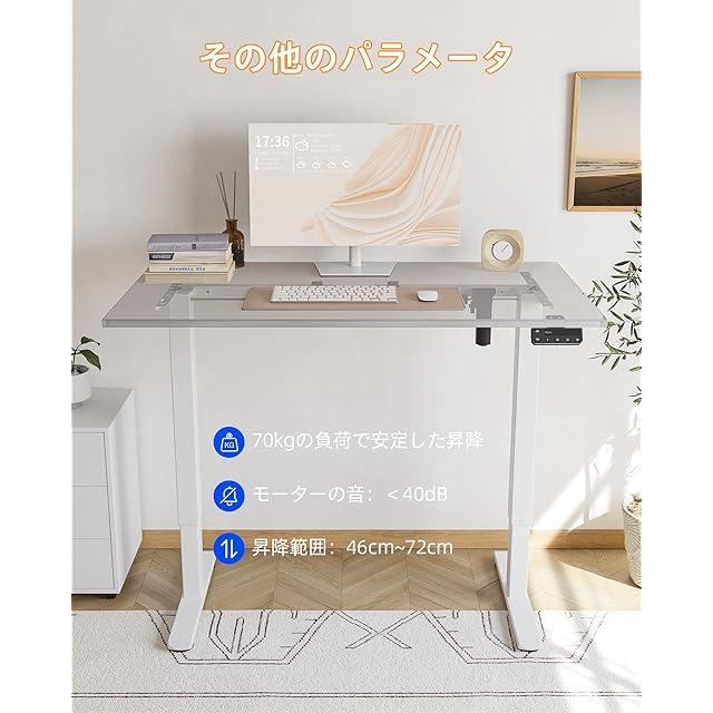 YIHAYO ローデスク 脚のみ 高さ46-72cm 昇降デスク ゲーミングデスク 耐荷重70kg 高さメモリー機能 上下自動昇降 静音, ホワイト