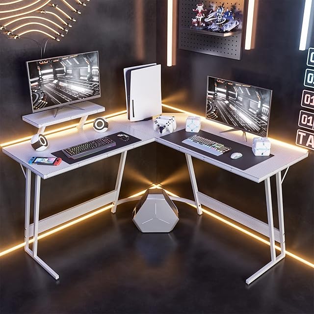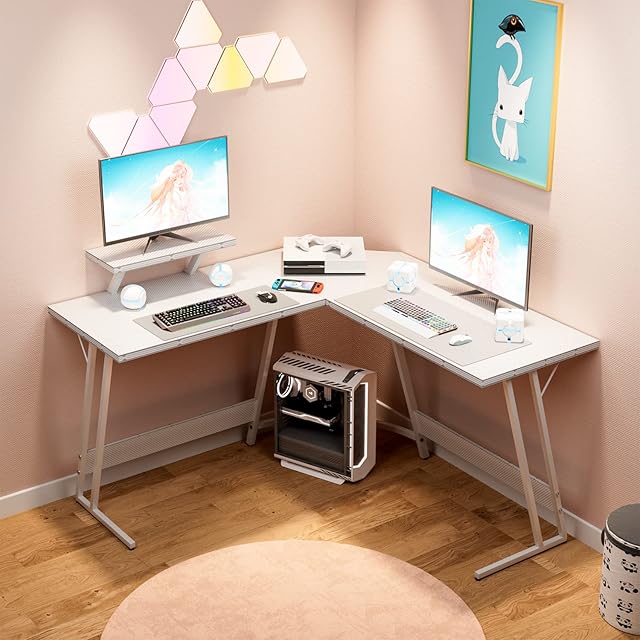 Victone ゲーミングデスク L字デスク「メーカー一年」 幅130cm パソコンデスク pcデスク L字型デスク パソコンコーナーデスク オフィスデスク 作業机 取外し可能なモニター台付き 省スペース 大型オフィスワークデスク ホワイト (VT-LWW)