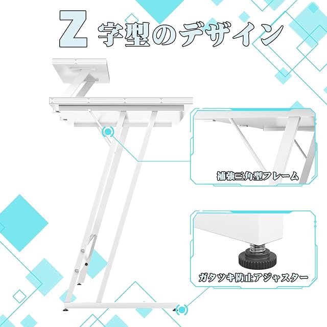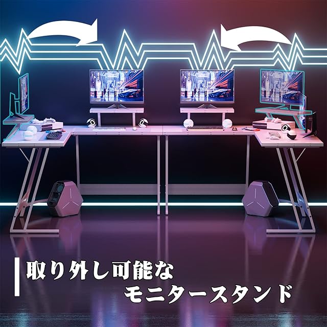 「省スペースのL字デスク」ほぼL字のデザインで、部屋の隅に置きやすく、空間を限界まで活用できます。それにL字のデザインで、2つの机として使うこともできます。広いL字天板でにゲーム設備及び色んな必要ものを置いてでも、何の混雑も感じません。L字机下の大空間も足が自由に伸びて縛られるような感じがなく、より快適な環境を提供してくれます。
