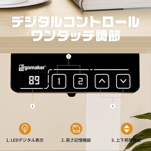 ERGOMAKER 昇降デスク幅110cm×奥行60cm スタンディングデスク 上下昇降デスク 電動昇降デスク 高さ調節デスク 電動昇降式 机 掛けフック付く 静音モーター採用 ゲーミングデスク 昇降式 昇降テーブル パソコンデスク 調整記憶機能メモリー付く 天板付く(ホワイト)+天板(木目調)