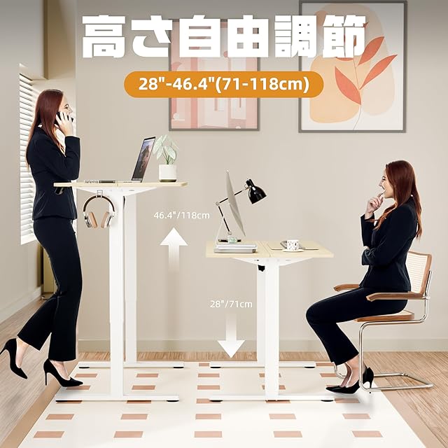 「安定性と耐久性」 このスタンディングデスクは、安定性と耐久性を確保するために、先進的な技術と高品質な素材を使用しています。家庭やオフィスで長時間使用しても、優れたパフォーマンスを維持します。