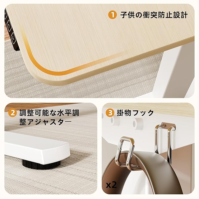 「環境に優しい特徴」電動昇降デスクは省エネ技術を採用しており、電力消費を削減し、環境への影響を低減します。また、関連する安全基準にも準拠しており、安心してご使用いただけます。