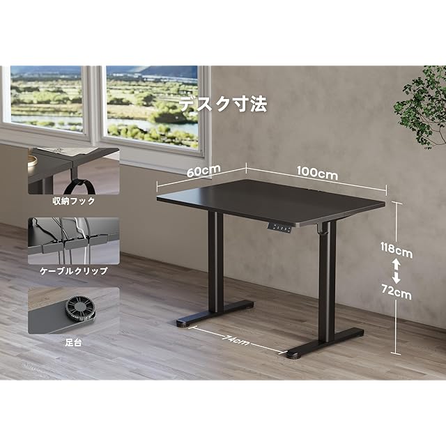 Claiks 昇降デスク 電動 スタンディングデスク 昇降式 テーブル 幅100cm*奥行き60cm テレワーク オフィスデスク 在宅ワーク パソコンデスク 高さ調節 メモリー機能 ブラックフレーム/ブラック天板