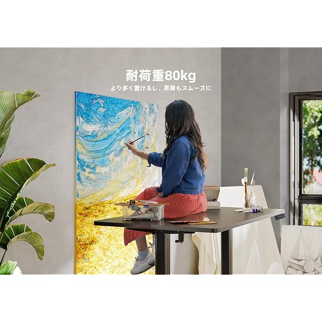 【高性能・耐荷重性】安全性を考慮し、角を丸く加工した強化スチール脚や高性能モーターを搭載しているため、耐荷重性と耐久性に優れています。最大耐荷重は80kgで、複数のモニターやゲーム機本体を置くこともできます。高性能なスタンディングデスクをお探しの方におすすめです。
