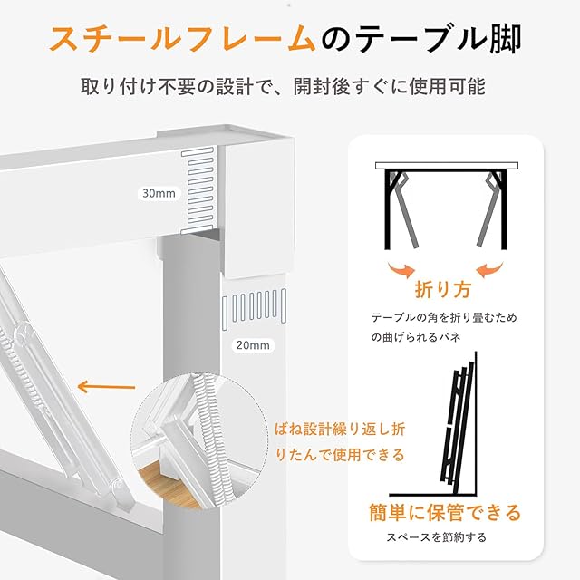 color:折りたたみ式脚:白/天板:白色 size:天板:幅80cm×奥行50cm: