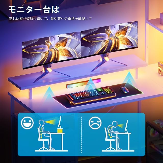 【様々なシーンで大活躍】 L字ゲーミングデスクは部屋の隅を最大限に活用でき、家庭でもオフィスでも日常作業に十分なスペースを確保できます。こちらのコーナーデスクは実用性が高くて色々なシーンに合わせて使えます。ゲームプレイ、パソコン作業用、テレワーク、在宅勤務などとしてご利用いただけます