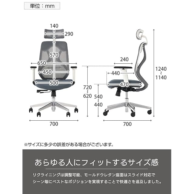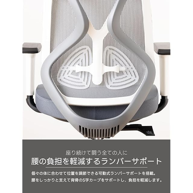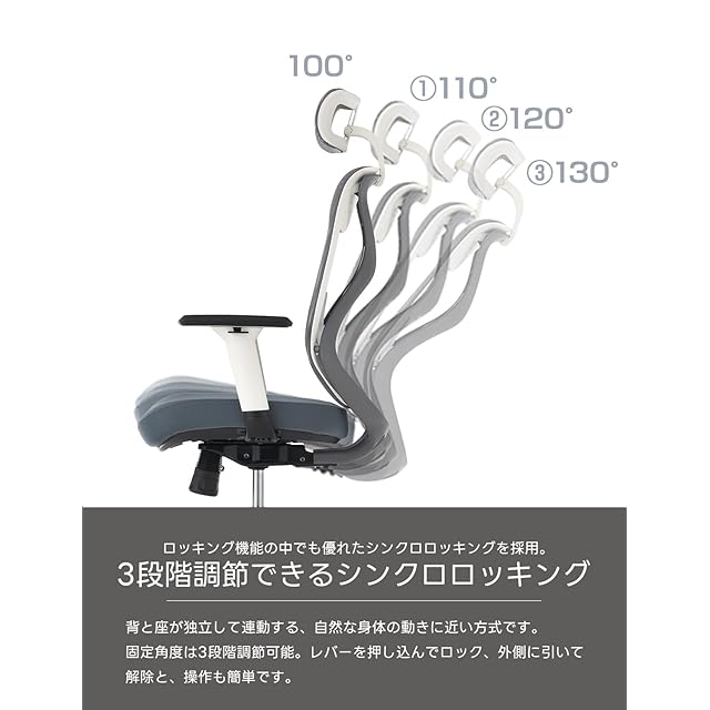 ランバーサポートやスライド座面、シンクロロッキングなど、個々の体に合わせてサポートする機能が満載