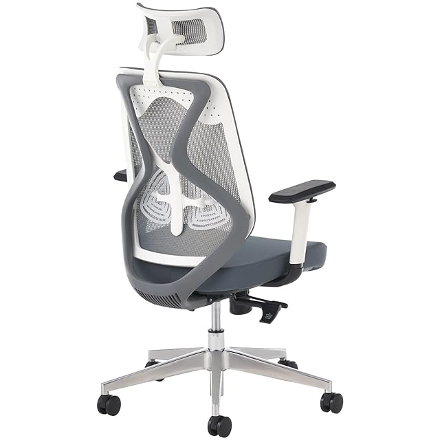 color:ホワイトフレーム×グレー(背メッシュ/座クロス) size:肘・ヘッドレスト付き: