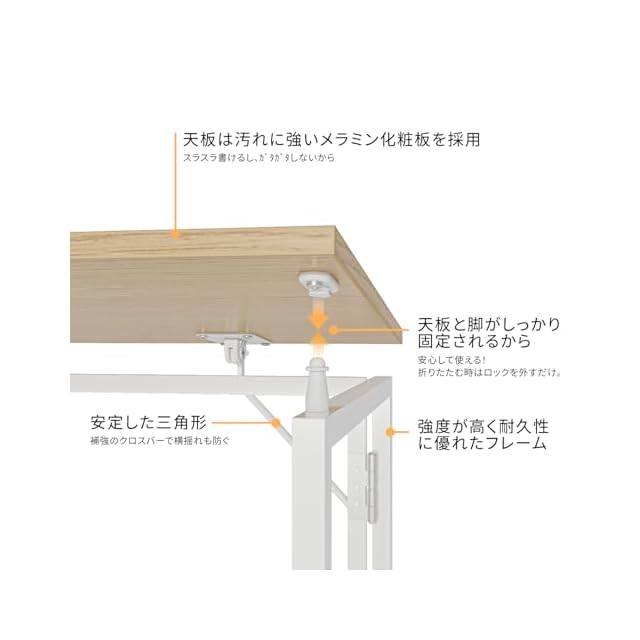 【天然木の温もりと耐久性を融合】天然木目の美しさと匠の技術により、高い耐久性を実現。金属フレームと木製天板の特性を活かした、上質で頑丈な折りたたみデスクです。