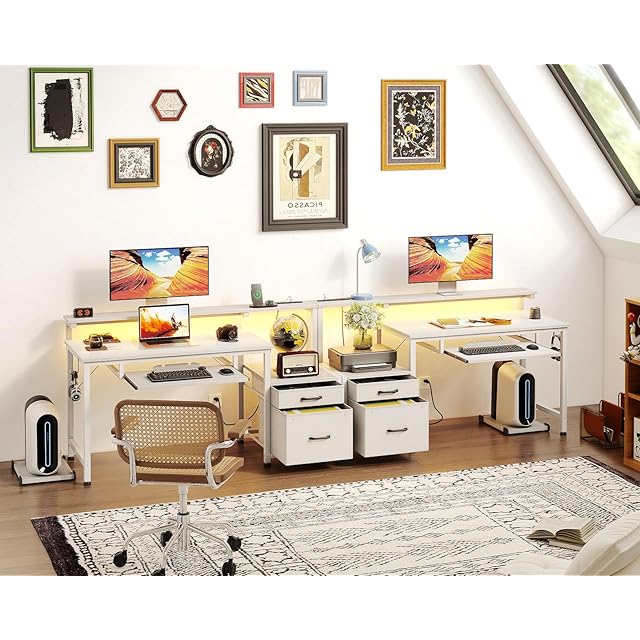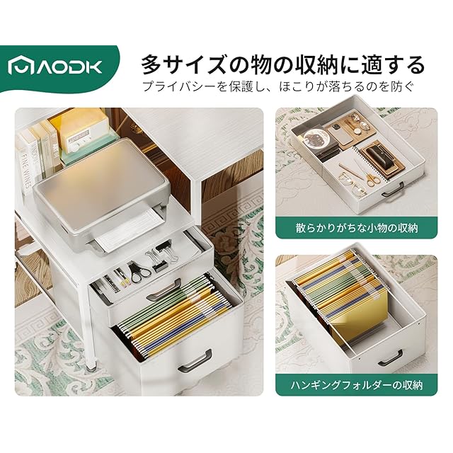 【革新の収納設計、多サイズの物の収納に適する】置台と布製の引き出し2杯からなるキャビネットのような収納空間+超長い机上台+可動的なCPUスタンド+フック、限られた空間で収納効率が大幅にUP。MDFボードを内蔵した引き出しは重い物を入れても変形しにくい。プライバシーを保護し、ほこりが落ちるのを防ぐ。デスク周りをちゃんと整頓いただけ、お部屋がスッキリ。インテリアに基づいて左右どちらでも設置OK。