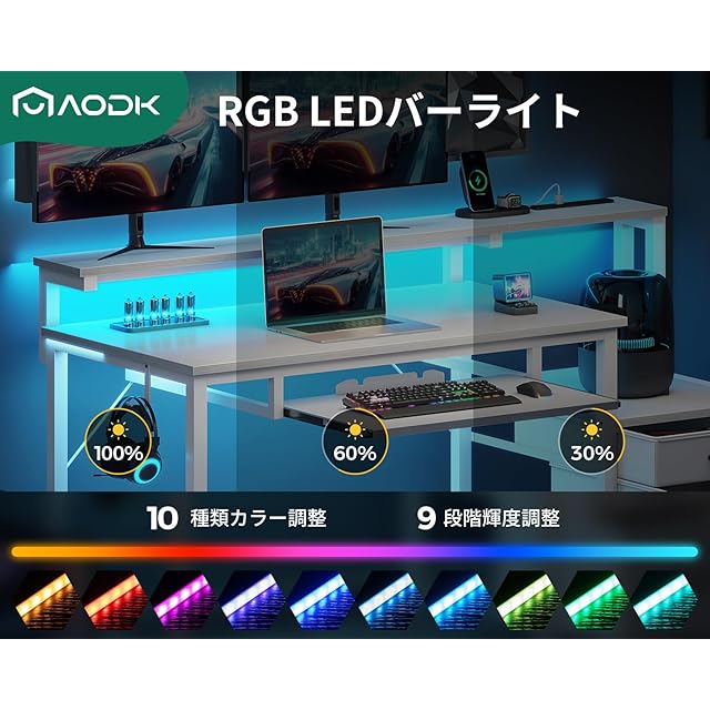 【RGBバーライト付き、お部屋の雰囲気が変わる】ゲーム机には10段階調色・9段階調光のLEDバーライトを搭載しており、気分やシーンに合わせてカラーを切り替えることができる。より頑丈で長持ちやすい。臨場感にあふれるゲーム雰囲気だけではなく、温かみのある学習・仕事環境も作り出せる。