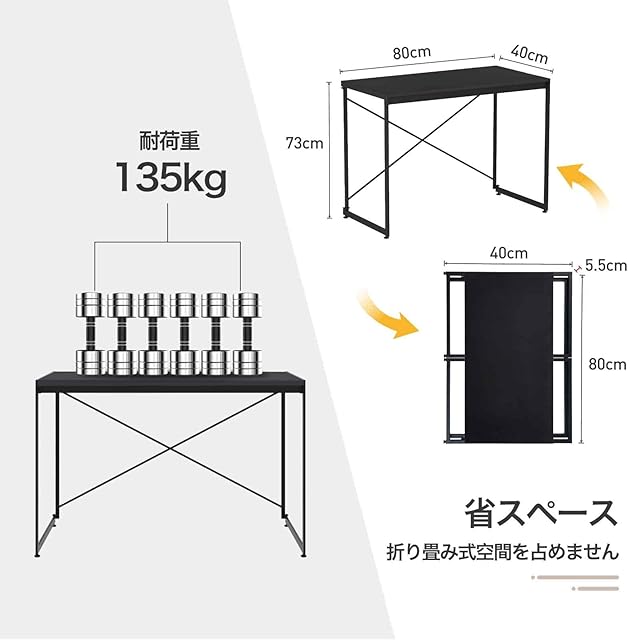 ■【30秒組立可能!】】30秒だけで組立可能!購入後の組立作業にネジや道具など一切不要のスナップ設計、折りたたみ式のデスク、大人の一人でも簡単にインストールができます。