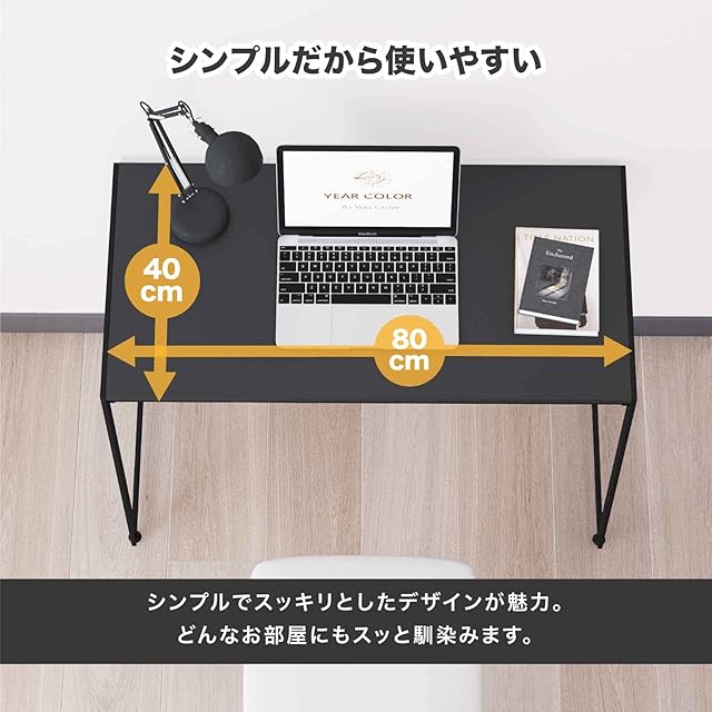 ■【本体仕様】幅80cm×奥行40cmのシンプルワークデスクです。汚れに強く、高強度のメラミン化粧板を使用しています。高さは75cmで、デスク下は十分な幅があるため収納用品を置いて天板は作業台として使用したり、本や商品を置くディスプレイラックとしても活躍します。