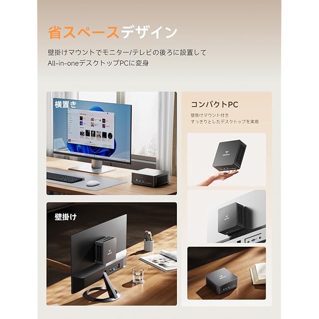 【パッケージ内容】UM760 Slim MiNiPC本体、日本語説明書、HDMIケーブル、電源アダプター 、電源コード、壁掛けマウント、ネジセット