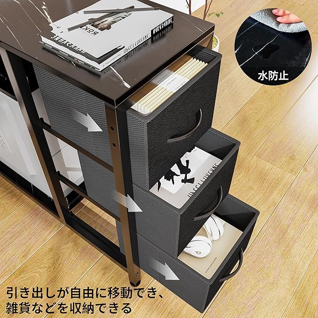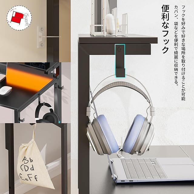 【オペレーション機能】2口コンセント付き、パソコン在宅ワークなどにすごく便利。引き出しも3個が付いてすごく収納力増加です。フックを装備しており、かばんなどを掛けるのは便利です。