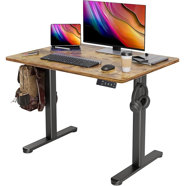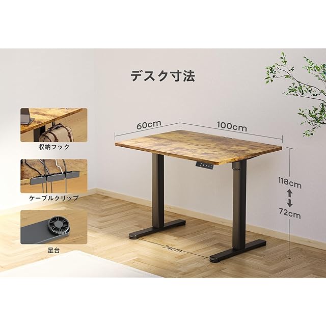 Claiks 昇降デスク 電動 スタンディングデスク 昇降式 テーブル 幅100cm*奥行き60cm テレワーク オフィスデスク 在宅ワーク パソコンデスク 高さ調節 メモリー機能 ブラックフレーム/ブラウン天板