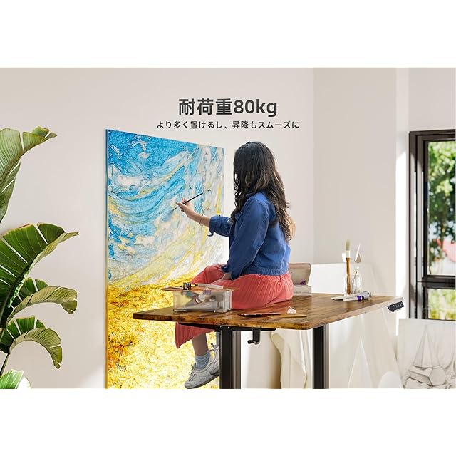 【高性能・耐荷重性】安全性を考慮し、角を丸く加工した強化スチール脚や高性能モーターを搭載しているため、耐荷重性と耐久性に優れています。最大耐荷重は80kgで、複数のモニターやゲーム機本体を置くこともできます。高性能なスタンディングデスクをお探しの方におすすめです。
