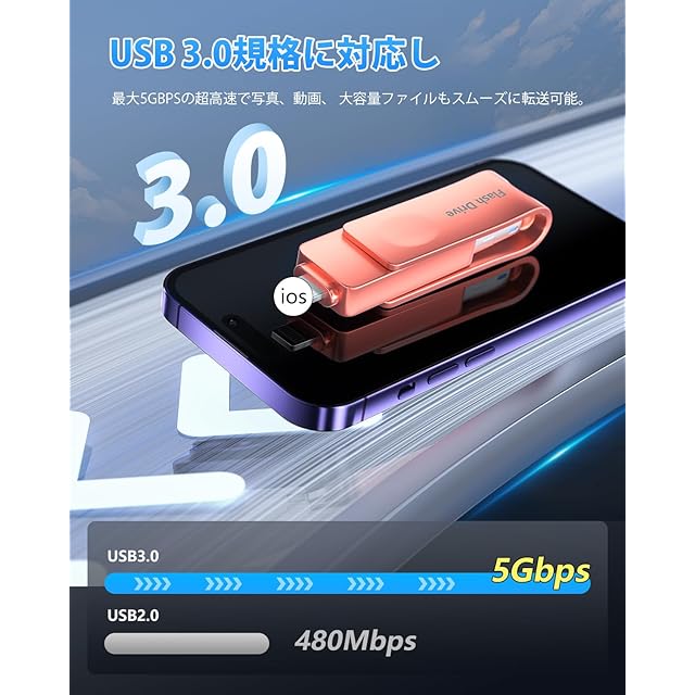 【高速データ移行】USB2.0により、USB3.0の方はデータ転送速度が速く、同じ枚数の写真を選択した場合、USB3.0の方はデータのバックアップが速く、時間も大幅に短縮されます。データは写真や動画だけでなく、各種ファイルや書籍資料、音楽データなどもUSBメモリーに移行して保存できます。ビッグデータ時代に、より速く、より安定して、より便利さを追求しながら、幸せを高める物づくりにこだわり続けています。USBメモリはデータを保存するものだけでなく、美しい思い出や幸せな瞬間を保存してくれるものだと思います。