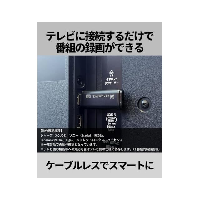✅【テレビの録画用ストレージに使えます】 外付けUSBドライブへの録画に対応した各社のテレビに接続可能です。 【動作確認機種】 シャープ(AQUOS)、ソニー(Bravia)、REGZA、Panasonic (VIERA、Diga)、LGエレクトロニクス、ハイセンス ※一部製品での動作確認となっています。 ※テレビ側の機能等への対応可否はテレビ側の仕様に依存します。(2番組同時録画等)