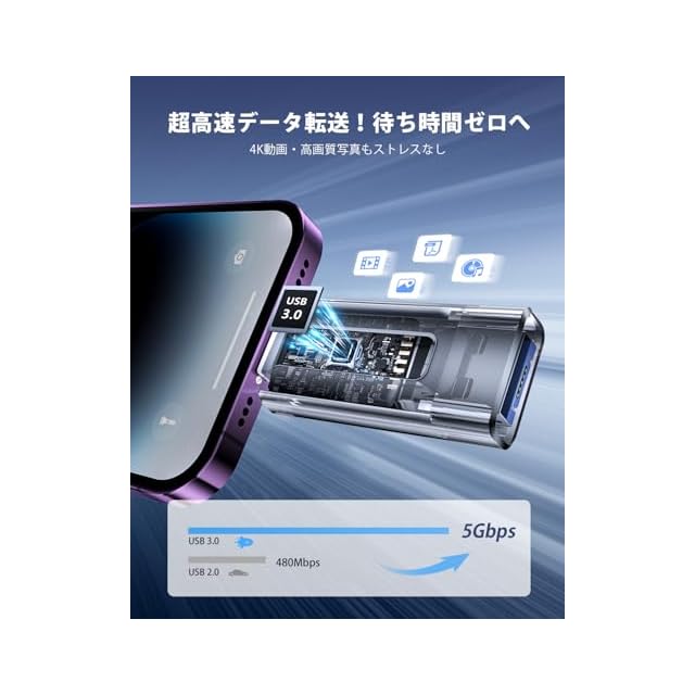【usb3.0超速転送!Phone写真・動画・データも秒速保存usbメモリ】このusbメモリはUSB 3.0技術を採用し、高速データ転送が可能です。従来のUSB 2.0に比べて約10倍の速度で、写真・動画・ドキュメントを迅速に移動できます。大量のPhone 写真や4K動画、ビジネス資料もサクサク移動ことが可能です。重いデータもusbメモリで秒速バックアップでき、スマホのストレージもスッキリ快適に。例えば、プレゼン資料や仕事用ファイルもusbメモリにまとめれば、共有も再生もスムーズ。旅行中の8K動画、イベントの撮影データ、SNS用素材などもusbメモリに保存して、スマホのストレージをスッキリさせましょう。