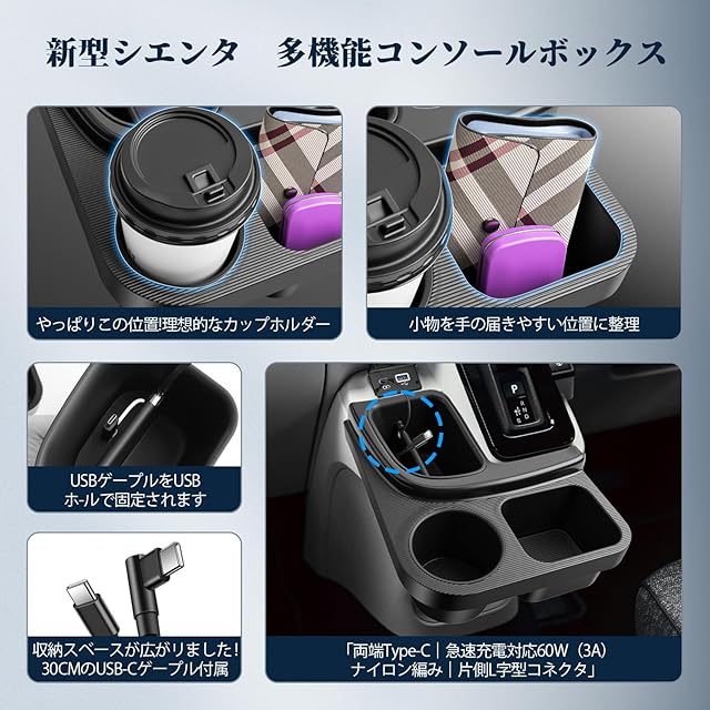 【シエンタ 10系 コンソールボックス・ご愛車にピッタリ!】適応車種:トヨタ 新型シエンタ 10系 15系 3代目 MXPL10G/MXPL15G/MXPC10G/MXPL15G型型 2022~2025.8。ご注意:本製品はトヨタ シエンタ10系(2025年8月以降の改良モデル)には対応しておりません。ご購入前に必ずご確認ください。