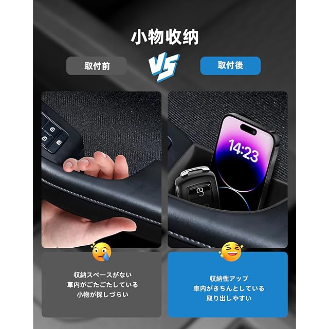 【小物収納】両側ドアハンドルの無駄なスペースを再利用し、効率的な空間利用で限られたスペースを最大限に活用できます。車内の環境を一新します!小物が整理されて手が届きやすく、必要なアイテムがすぐに取り出せます。運転中に物が見つからない心配はもうありません!