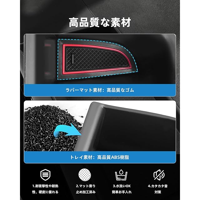 【素材】ドアハンドルポケット素材:高品質ABS樹脂製 (耐高温) ラバーマット素材:高品質ゴム。防塵・防キズ・騒音なし、汚れても水洗いすれば繰り返し使用できます。