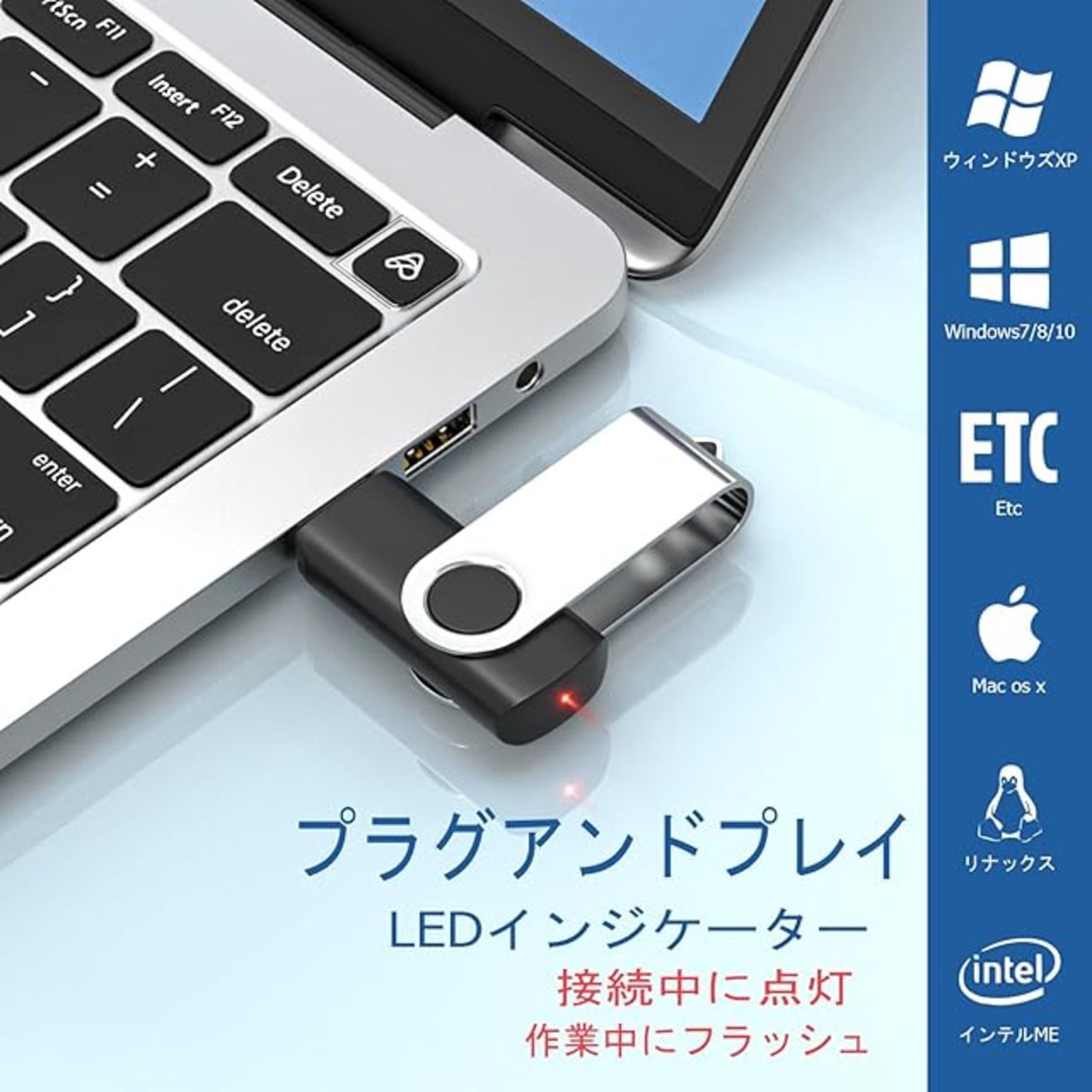 回転式/インジケーターライト:接続時にLEDインジケーターが点灯し、ファイル転送中は点滅するので操作が簡単。360度回転式頑丈な構造滑らかな表面処理マイクロ。便利なストラップホール付きますので、キーホルダーを簡単に取り付けることが可能です。これにより、USBフラッシュドライブを保護し、紛失を防ぎます。プレゼントとしても相応しい。