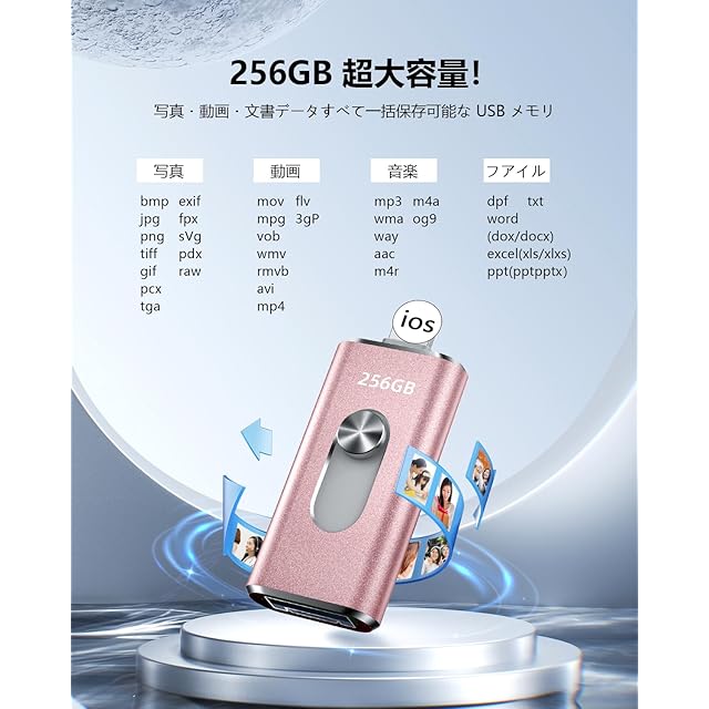 256GB usbメモリ【アプリ不要・アルバムから写真保存】4in1プッシュ型 Phone対応 スマホ携帯 高速 データ保存 バックアップ iOS/Type-C/USB/Micro USBフラッシュメモリ 外付けストレージ スライド式 容量不足解消 usbメモリ!256GB Pink