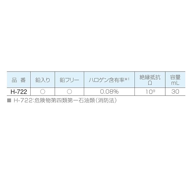 ハライド含有率0.08%の低ハロゲン仕様で基板や電子部品への影響を最小限に!※ハライド含有率…フラックスの活性を促進するために含有する、活性剤の含有率。試験はJIS Z 3197 に基づく。