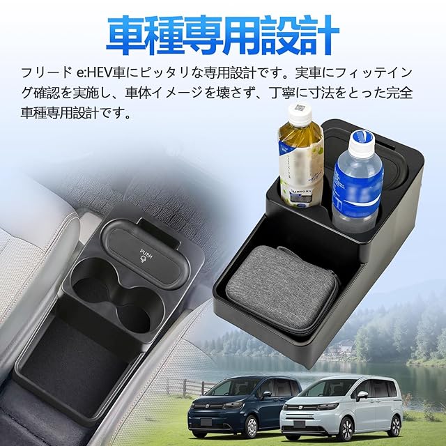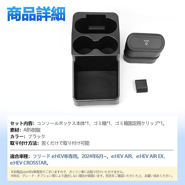 TELLIKA フリード e:HEV車専用 増設コンソールボックス e:HEV AIR,e:HEV AIR EX,e:HEV CROSSTAR アクセサリー コンソールトレイ 滑り止め 取付け簡単 車用収納ボックス 小物入れ ゴミ箱 キズ・汚れ防止 整理整頓車種専用コンソール