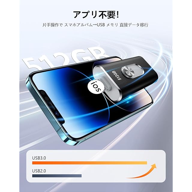 【プリ不要でPhone から直接 USB に写真・動画を移す 】 この Phone 対応 USB メモリは、専用アプリ不要でスマホのアルバムから動画・写真データを直接外付け USB メモリに保存可能!機器が苦手な方でも直結だけで簡単にデータ移行でき、Phone データ保存や外付けメモリとしての使い勝手を追求。USB3.0 規格搭載で高速アクセスを実現し、iOS/Android/Windows/Mac 対応で幅広い環境で活躍します。