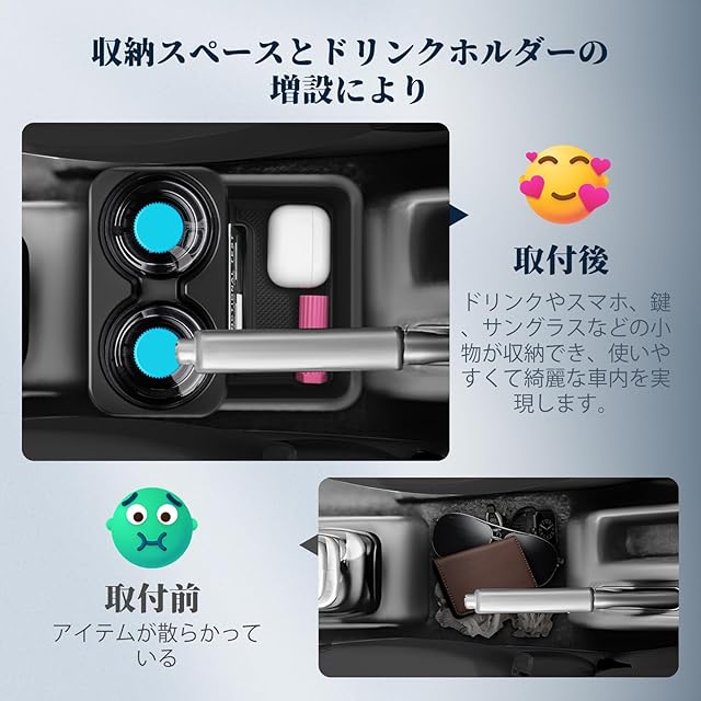 【収納スペースがUP!】手の届きやすい位置にスマホやサングラスなどの小物を整理可能。滑り止め加工済みのマットで、防塵・防キズ・カタカタ異音を減少し、使いやすくて綺麗な車内を実現します。