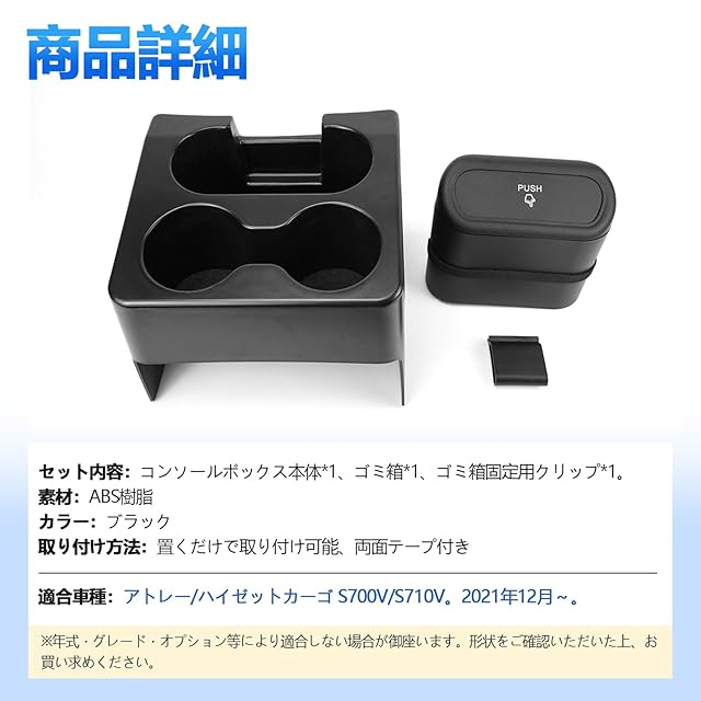 TELLIKA アトレー コンソールボックス ハイゼットカーゴ S700V S710V ドリンクホルダー アクセサリー コンソールトレイ 滑り止め 取付け簡単 車用収納ボックス 小物入れ ゴミ箱 キズ・汚れ防止 整理整頓 車種専用コンソール