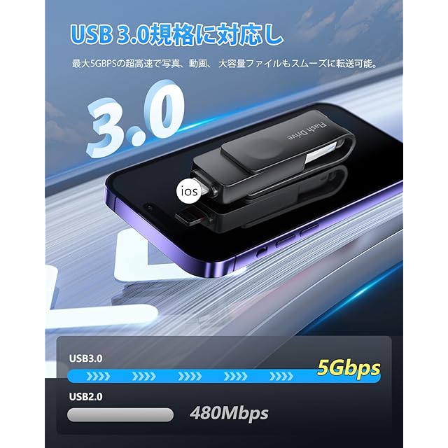 【高速データ移行】USB2.0により、USB3.0の方はデータ転送速度が速く、同じ枚数の写真を選択した場合、USB3.0の方はデータのバックアップが速く、時間も大幅に短縮されます。データは写真や動画だけでなく、各種ファイルや書籍資料、音楽データなどもUSBメモリーに移行して保存できます。ビッグデータ時代に、より速く、より安定して、より便利さを追求しながら、幸せを高める物づくりにこだわり続けています。USBメモリはデータを保存するものだけでなく、美しい思い出や幸せな瞬間を保存してくれるものだと思います。
