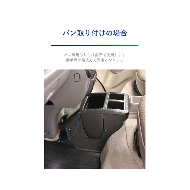 【バンタイプ・ワゴンタイプの両方に対応】 本製品はバンタイプ・ワゴンタイプの両方に取り付けが可能です。 インパネアンダーボックス(センター)の付いていないバンタイプについては、付属の「バン専用取り付け部品」を使用して取り付けます。 ワゴンタイプとインパネアンダーボックス(センター)の付いているバンタイプは、「バン専用取り付け部品」を使用せずに取り付けることが可能です。 ※本製品を装着すると、車両のインパネアンダーボックス(センター)は使用できなくなります。