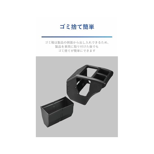 【ゴミ捨てがカンタンで容量もちょうどいいゴミ箱】 ゴミ箱は製品の側面から出し入れできるため、製品を車両に取り付けた後にゴミ捨てが簡単です。 また、容量も約2.8Lとちょっとしたゴミ捨てに最適な容量です。