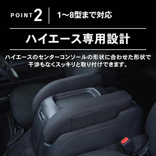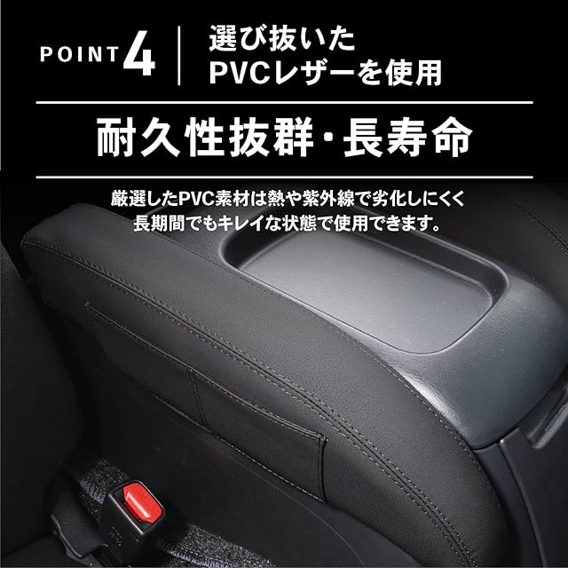 POINT.2 「ドライブの優しい味方」 現車を何度も採寸し、最適な高さを実現しました。 PVCレザーは柔らかく、長時間の使用でも快適さを提供します。