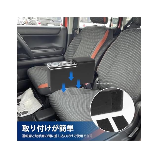 【取り付け簡単】工具不要、ハスラー アームレストの取り付けが簡単に完成します。運転席と助手席の間に差し込むだけで利用できるため、とても便利です。そして、収納ボックスの内部に付属の両面テープ付きベルクを利用して底部を固定してより強固になります。
