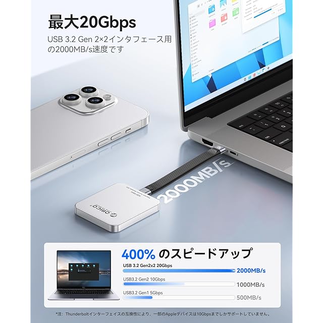 【大容量&即時拡張】この外付けソリッドステートドライブは、挿すだけでメモリ不足を即座に解決。写真や動画の保存に最適なORICO外付けSSDです。(※Lightningポート搭載のiPhoneには非対応)