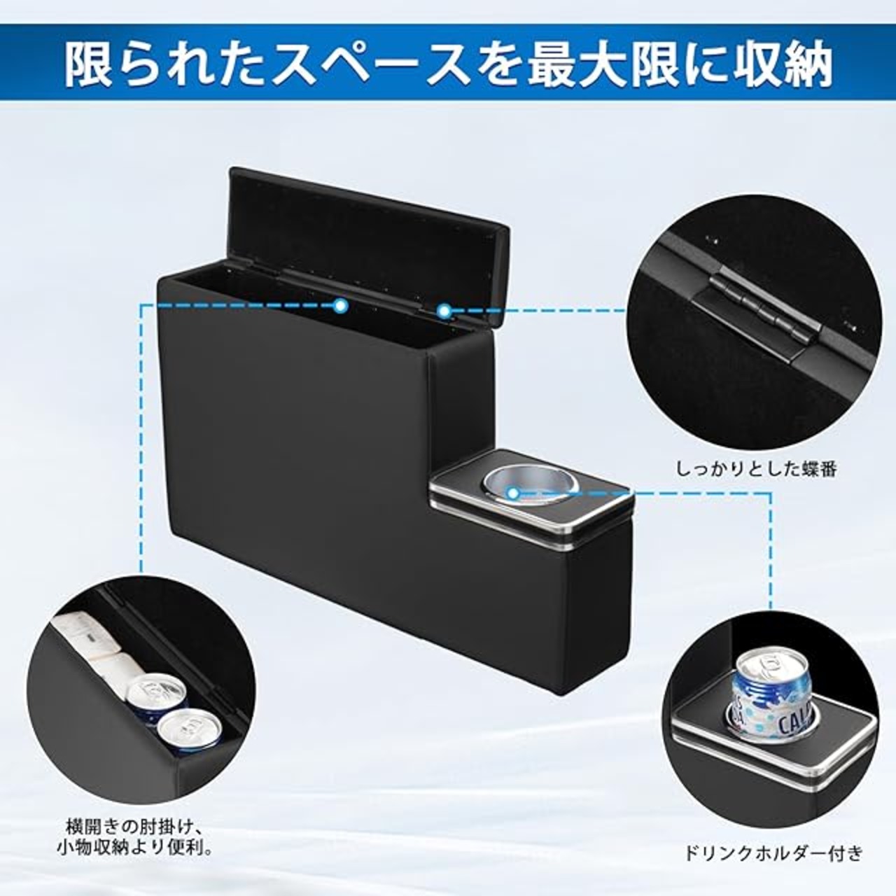 3.【ドリンクホルダー付き】:肘掛としての快適さを損なわず、ドリンクホルダーと収納も搭載するアームレストを採用し、手に届きやすく、便利で、より気楽に運転できます。