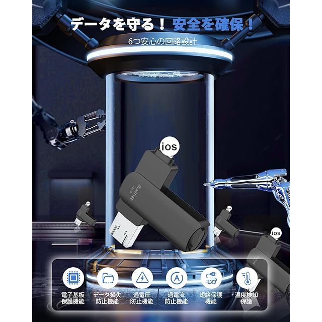 【4 IN 1 usbメモリ】Phone、Pad、Androidシリーズと100%互換性があります。usbメモリはPhone 15 Pro Max/15 Pro/15 Plus/15/Phone 14 Pro Max/14 Pro/14 Plus/14/SE 3/13 Pro Max/13 Pro /13/13 mini /12 Pro Max/12 Pro/12 /SE 2 /11 Pro Max/11 Pro/11 /XR/XS Max/XS /X /8 Plus/8/i Pad Air(第1/2/3世代)/ MacBook(Pro/Air)/iPad mini(第1/2/3/4/5世代)/i Pad(第5/6/7/8/9世代)アイフォン全シリーズ/ パソコン/ Type-Cスマホ/ Androidスマホ /タブレットなどとデータ移行互換性のあるusbメモリー。