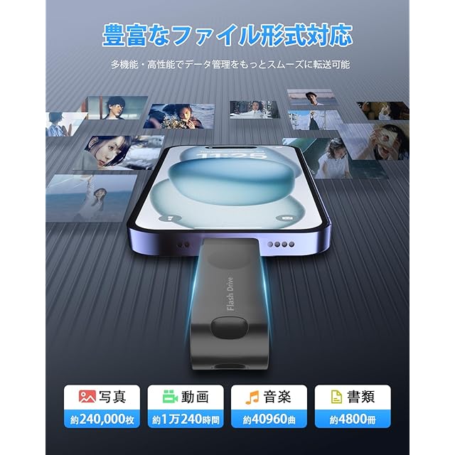 【スマホ容量不足解消・iCloud課金対策】スマホに保存されている動画や写真、ダウンロードされるアプリが多ければ多いほど、スマホの容量がいっぱいになり、それ以上データ保存はできなくなります。今は、スマホのデータをクリーンアップする必要はなくて、USBメモリをそっと挿入するだけで、スマホの写真データなどをUSBメモリに移行し保存できます。これにより、スマホの空き容量を増やすことができて、大容量の携帯を高価で買う必要もなく、iCloudに課金する必要もなくなります。