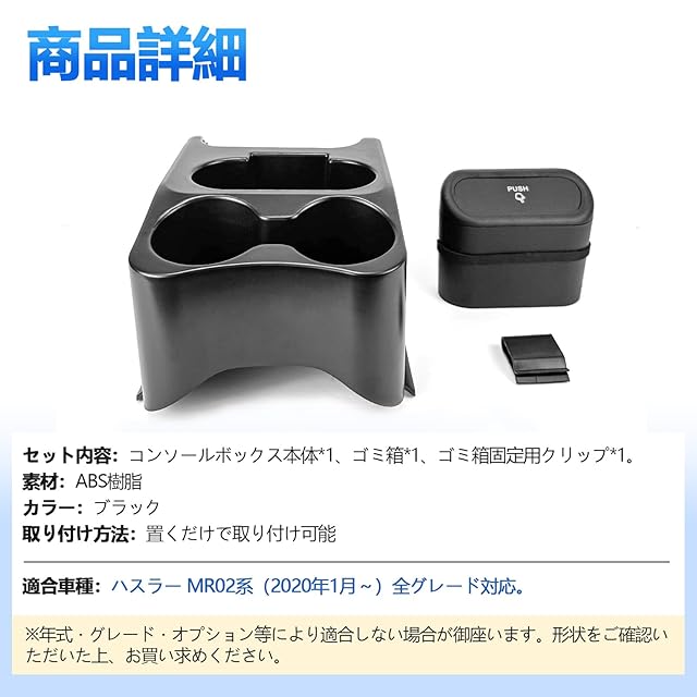 TELLIKA ハスラー コンソールボックス MR52S / MR92S アクセサリー コンソールトレイ 滑り止め 取付け簡単 車用収納ボックス 小物入れ ゴミ箱 キズ・汚れ防止 整理整頓 車種専用コンソール