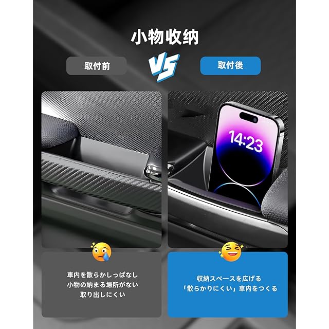 【小物収納】両側ドアハンドルの無駄なスペースを再利用し、効率的な空間利用で限られたスペースを最大限に活用できます。車内の環境を一新します!小物が整理されて手が届きやすく、必要なアイテムがすぐに取り出せます。運転中に物が見つからない心配はもうありません!