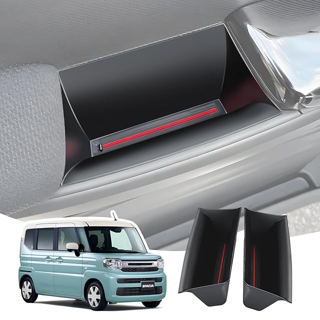 LANGBEAN スズキ スペーシア MK53S(2017.12~現行)専用 ドアハンドルポケット SPACIA 運転席 助手席 収納ボックス コンソールボックス 内装パーツ カスタムパーツ スペーシアアクセサリー 小物入れ 滑り止め ラバーマット付き 2Pセット