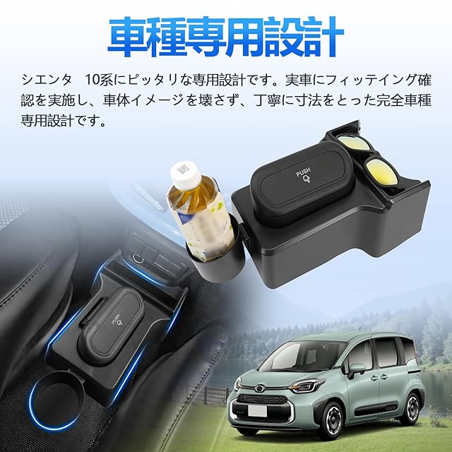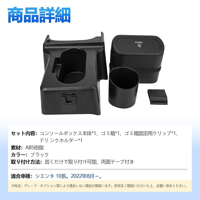 TELLIKA シエンタ コンソールボックス シエンタ 10系 ドリンクホルダー アクセサリー コンソールトレイ 滑り止め 取付け簡単 車用収納ボックス 小物入れ ゴミ箱 キズ・汚れ防止 整理整頓 車種専用コンソール