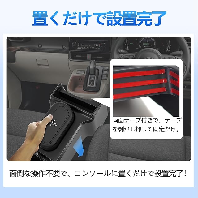 【設置簡単】面倒な操作不要で、コンソールに置くだけで設置完了!両面テープ付きで、テープを剥がし押して固定だけ。