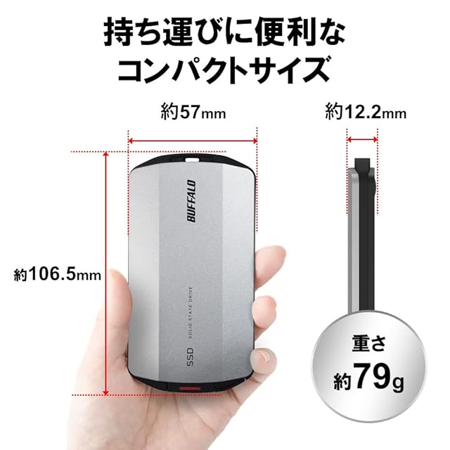 バッファロー SSD 外付け 2TB USB3.2 Gen2 Type‐C 最大読出速度1050MB/秒 防塵防滴 IP55 耐衝撃 MIL‐STD ポータブル 【 iPhone 15 15Pro Windows Mac Chrome PS4/5 メーカー動作確認済み】 SSD-PHP2.0U3SA/N