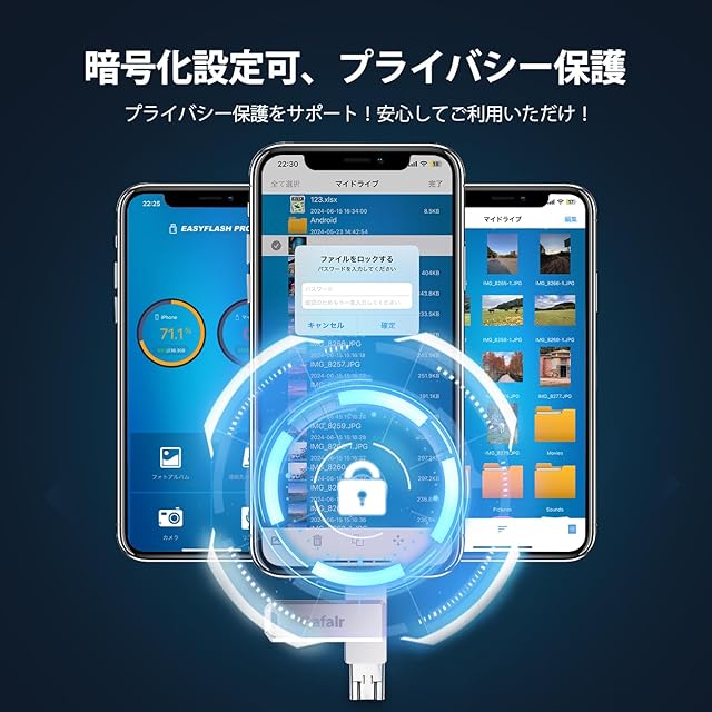 【多機能USBメモリ&データ暗号化】phone usb メモリーにはiOS、type-c、USB、micro USBの機種の接続タイプが4種も使用出来る4 in 1 USBメモリです。PC/Android/MacBook/iOSで簡単にデータ バックアップできます。また、このUSBメモリはスマホ、パソコン、padなどのデバイスに使用でき、写真、音楽、ビデオ、ファイル、Excel、メモ、連絡先など様々なのデータが保存可能のだけでなく、パスワードを自由に設定する機能も備えていて、個人情報のプライバシーを強力に保護します。安心してご利用いただけます!